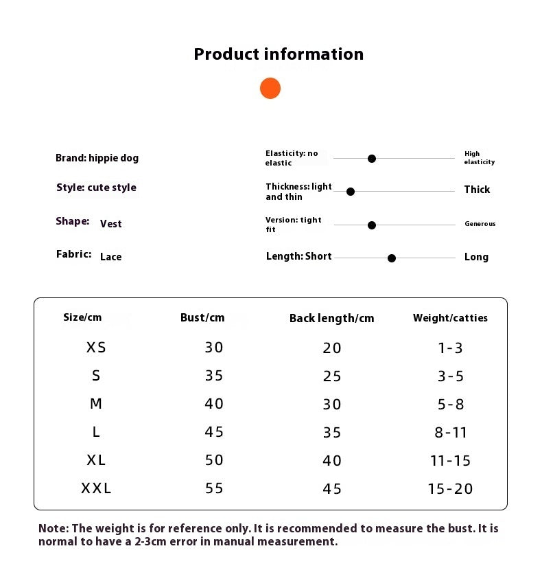 Size: XS (recommend weight 0.50 kilograms-1.50 kilograms, S (recommend weight 1.50 kilograms-2.50 kilograms, M (recommend weight 2.50 kilograms-4.00 kilograms, L (recommend weight 4.00kg-5.50kg, XL (recommend weight 5.50kg-7.50kg, XXL (recommend weight 7.50kg-10.00kg