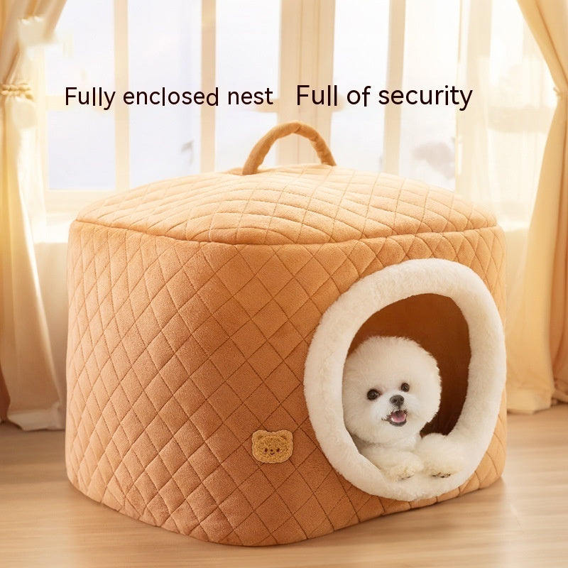 Color: two-way quilting dual-purpose kennel-Brown, two-way quilting dual-purpose kennel-yellow, two-way quilting dual-purpose kennel-Blue